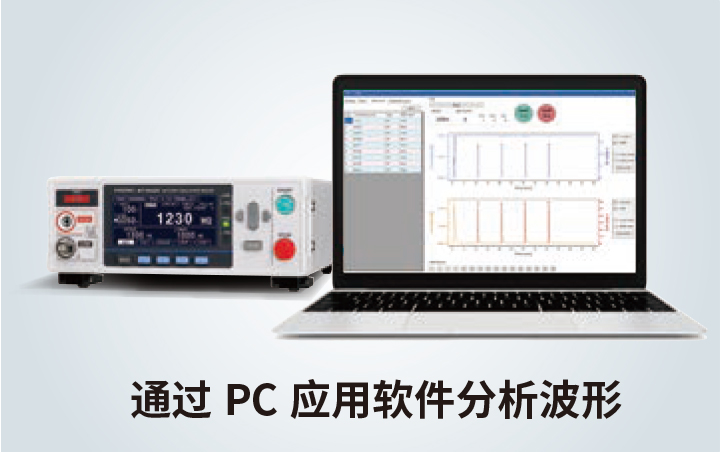 绝缘电阻测试中电压电流的变化,能够使用专用的 PC 应用软件来显示。