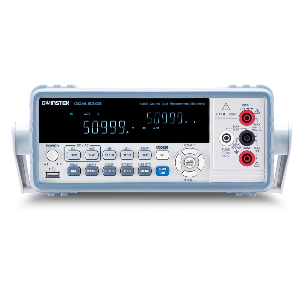 固纬电子推出新一代以USB为通讯接口的双量测数字万用表 – GDM-834x系列,该系列包含2个型号 – GDM-8341和GDM-8342,均搭配50000位数VFD双显示屏、0.02%直流电压基本准确度和USB 通讯接口,为提供所有使用者量测上的准确性、清晰的数值观测和连结计算机的便利性。 该系列万用表支持一般万用表所拥有的基本量测项目外,甚至还配有可量测电容和温度的能力。此外该系列也提供了多样的辅助性功能,来协助符合制程测试、教学实验和检验场合时的量测应用需要。 另外,在资料获取和储存方面,全系列机型除了可以透过标准配备的USB界面来编写程序读取外;GDM-8342在前面板上,还提供了可以直接使用U盘来储存量测资料的功能,同时GDM-8342还提供可选购的GPIB接口(需于出厂前加装),以符合多数使用自动量测系统者的习惯。