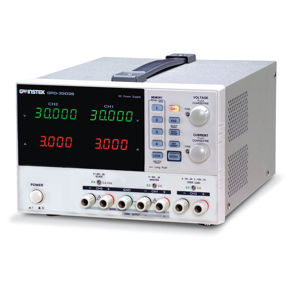 ● 2, 3和4路独立输出 ● 4组LED显示:小数点后三位(GPD-2303S/3303S/4303S) ● 最小分辨率: ● GPD-2303S/3303S/4303S (1mV/1mA) ● GPD-3303D (100mV/10mA) ● 数字面板控制(旋转编码开关,带指示灯的硅胶按键) ● 友善的用户操作,粗调/微调音量控制 ● 4组保存/调取 ● 锁键功能 ● 输出ON/OFF ● 追踪串联/并联模式 ● 智能型温控风扇,有效降低噪声 ● 轻巧的设计 ● PC软件&USB驱动 ● USB标准接口