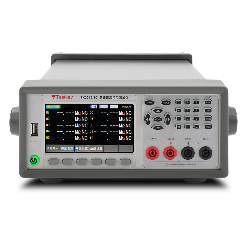 技术规格: 测量范围:1μΩ~20MΩ,通道数:4(TK2519-4)/10(TK2519-10)/20(TK2519-20)/30(TK2519-30),最小分辨率:10μΩ,电阻测量基本精度:0.05%,最高采样速率约12ms/通道