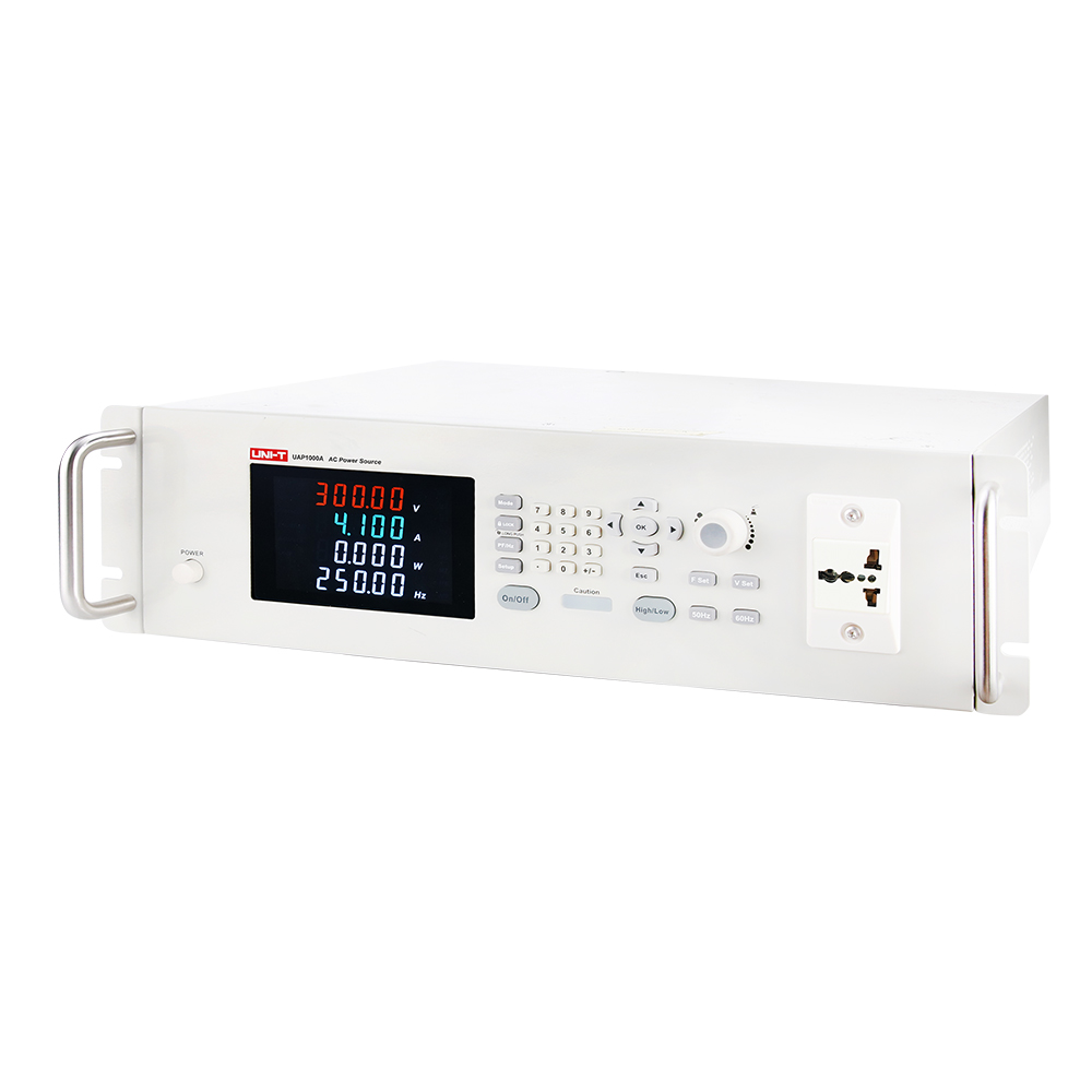 UAP系列可编程交流变频电源采用先进的直接数字频率合成器(DDS)波形产生技术和正弦脉冲宽度调制(SPWM)技术,输出交流电压频率稳定度高,连续性好。测量精度高,适用电流正弦半波及其类似的带直流分量的各种波形的测试。简单而人性化的面板设计,响应快速,兼容性强,既能满足桌面式应用测试,亦能搭配其它仪器,组建测试系统,实现对产品的自动化测试。