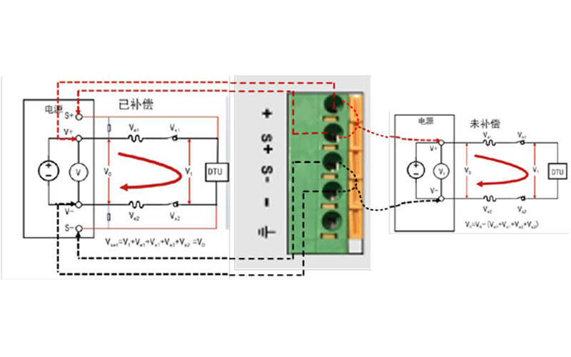 UDP6720系列提供远端补偿功能,用户可以通过将负载端的电压信号接入到远端补偿端子中,来激活此功能。补偿功能的应用使得输出负载端电压不再受电流大小和负载线分压的影响,可使输出电压始终维持设定值输出,最终保证了输出电压的精度。