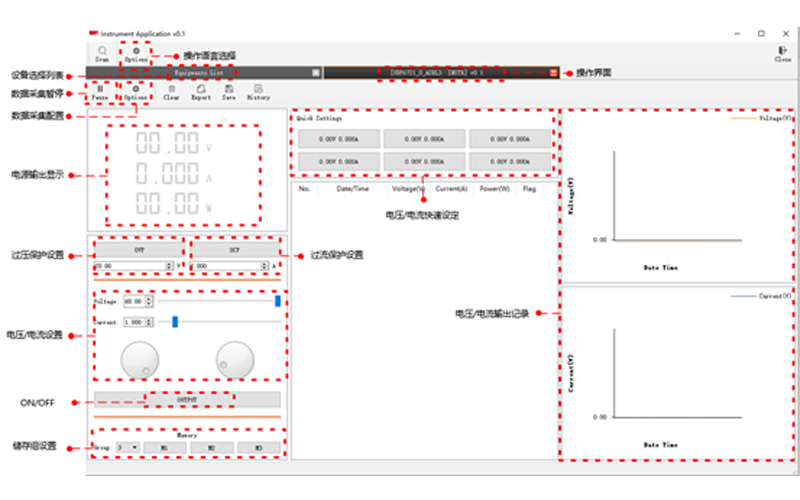 UDP6720系列标配RS232通信接口与上位机软件,用户利用该软件可以轻松的对电源系统进行远程控制,进行输出电压、电流的设置及数据保存。