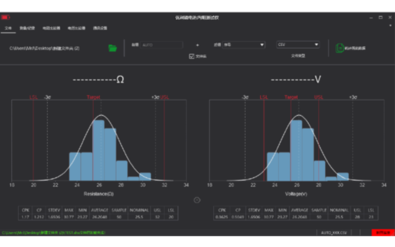 电阻测试范围: 0.001mΩ~30.00Ω ; 电压测试范围: 0.0001V~100.000V; R-量程:3mΩ,30mΩ,300mΩ,3Ω,30Ω,自动; V-量程:10V,100V,自动;