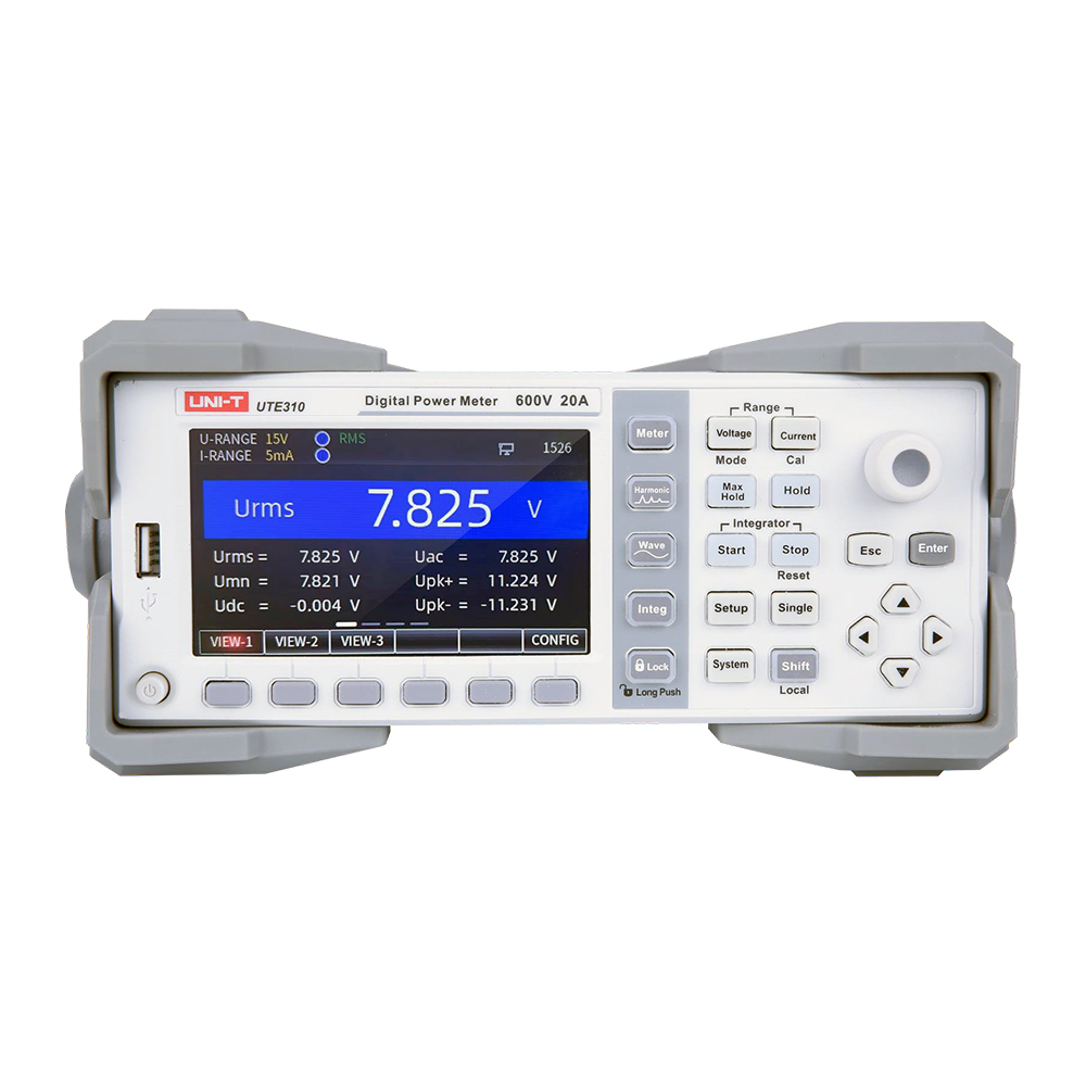 UTE300系列数字功率计,集电压、电流、功率、功率因数、频率等诸多功能为一体。UTE300具有 0.1%的功率测量精度,1MSa/s的采样率,100ms最快数据更新速度,电流测量范围 50μA~50A 可满足用户从小电流大电流的测量需求;同时具备 USB、RS-232、LAN、GPIB(选配)等接口满足用户不同的测试通信需求。