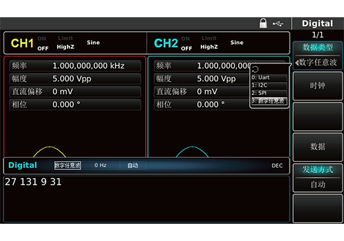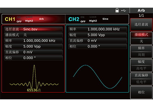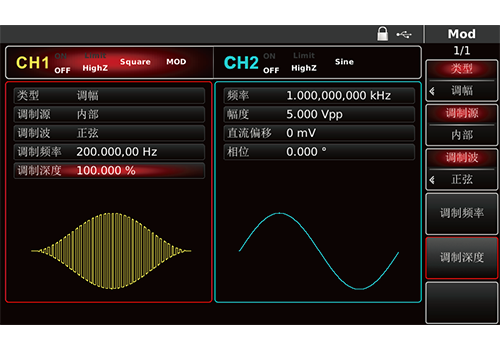 ● 500MSa/s采样速度和16bits垂直分辨率 ● 32Mpts任意波存储器,7GB非易失波形存储 ● 丰富的调制类型:AM、FM、PM、ASK、FSK、PSK、BPSK、QPSK、OSK、PWM、SUM、QAM ● 80MHz/160MHz/200MHz 正弦波输出 ● 标配等性能双通道 ● 标配16次谐波发生器 ● 支持数字任意波输出接口