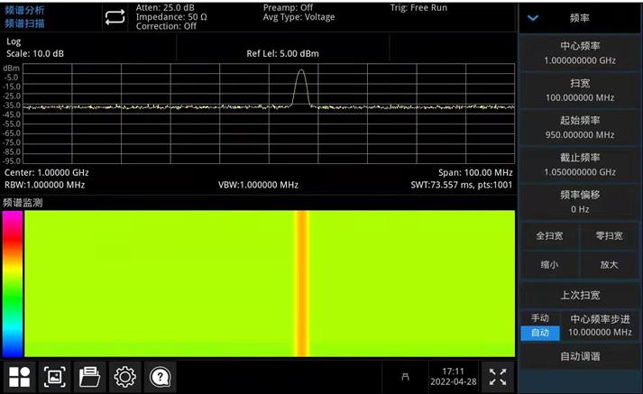 可以直观的查看指定频域内各频点的功率分量