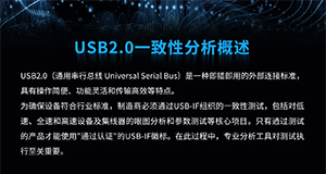 USB2.0(通用串行总线UniversalSerialBus)是一种即插即用的外部连接标准具有操作简便、功能灵活和传输高效等特点。为确保设备符合行业标准,制造商必须通过USB-IF组织的一致性测试,包括对低速、全速和高速设备及集线器的眼图分析和参数测试等核心项目。只有通过测试的产品才能使用"通过认证"的USB-IF徽标。在此过程中,专业分析工具对测试执行至关重要。