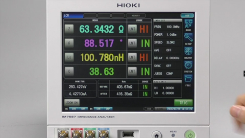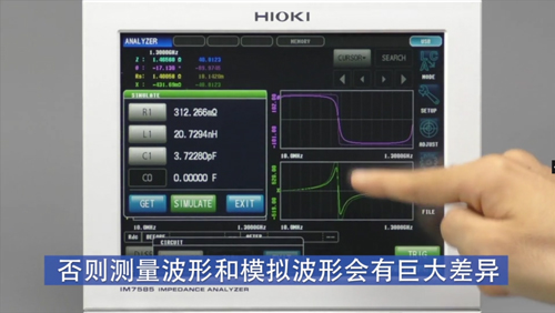 能够以测量结果为基础推测5种等效电路模式的常数。 而且,可以通过模拟功能,使用推测结果或者任意的常数来显示频率特性的理想值。 此外,使用比较器功能,还能够确定测量结果是否在判定区域内。
